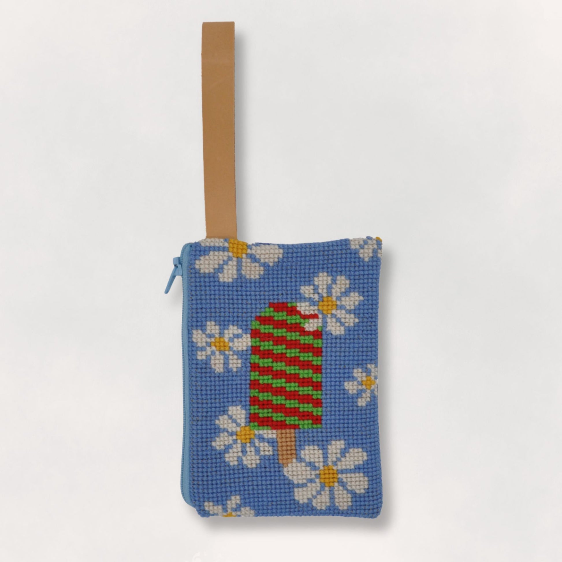 Det fine broderikit "tornado pung" indeholder alt du skal bruge for selv at kunne brodere en fin pung - farvelagt mønster med symboler, stramajstof, garn, lynlås, læderstrop, stof og to nåle.